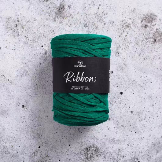 Ribbon från Svarta Fåret är ett så kallat tubgarn tillverkat av 100 procent återvunnen bomull. Detta kreativa garn passar perfekt till virkade interiördetaljer såsom mattor, korgar och disktrasor. Ett projekt i Ribbon går väldigt snabbt, och passar nybörjare, dessutom med mindre miljöpåverkan.